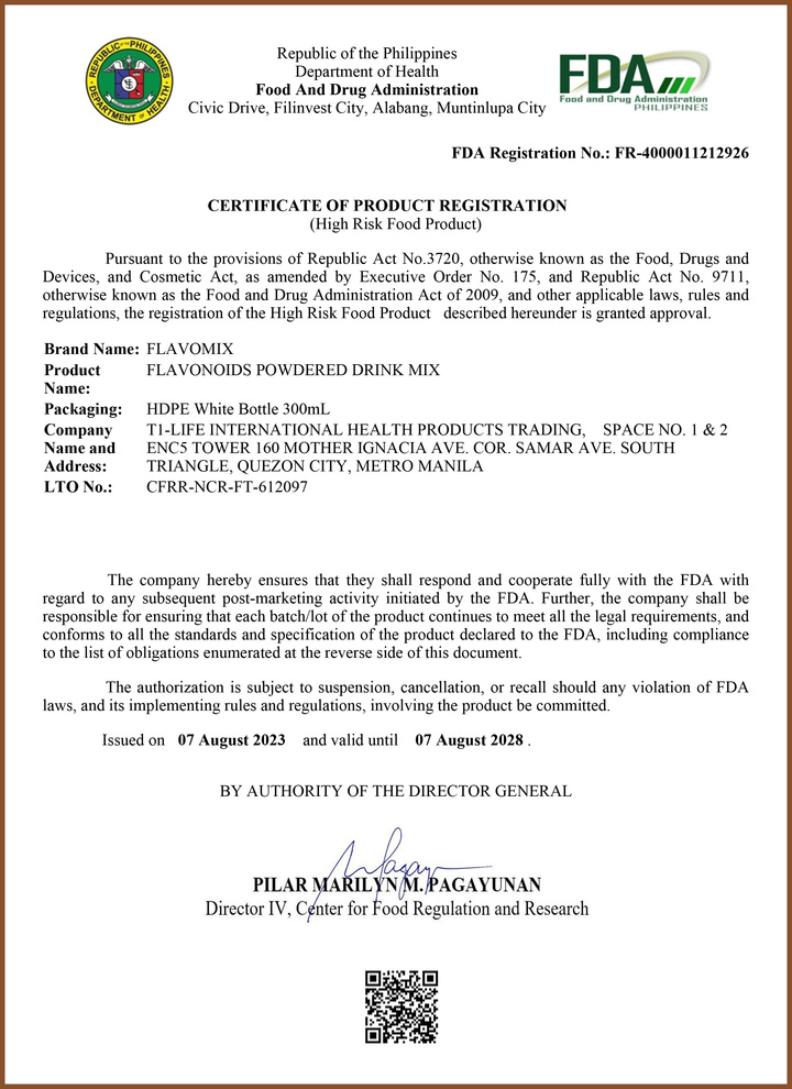 For your safety and assurance, the product is FDA approved with FDA Registration No: FR-4000011212926.